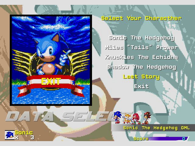 Наконец-то начинают зарождаться новые русские фан-игры. Итак, Sonic GML от юзера под ником 1001. Скачать. Пока что это лишь голый 360-движок с четырьмя персонажами и некоторыми фишками (например, бонусный этап на чекпоинте). Будем ждать обновлений и первых кастомных уровней.